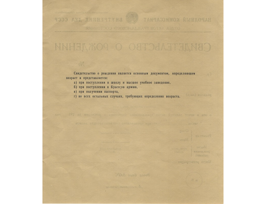 - При желании вы можете заказать свидетельство о рождении СССР 1930 - 1939 гг. времен СССР;