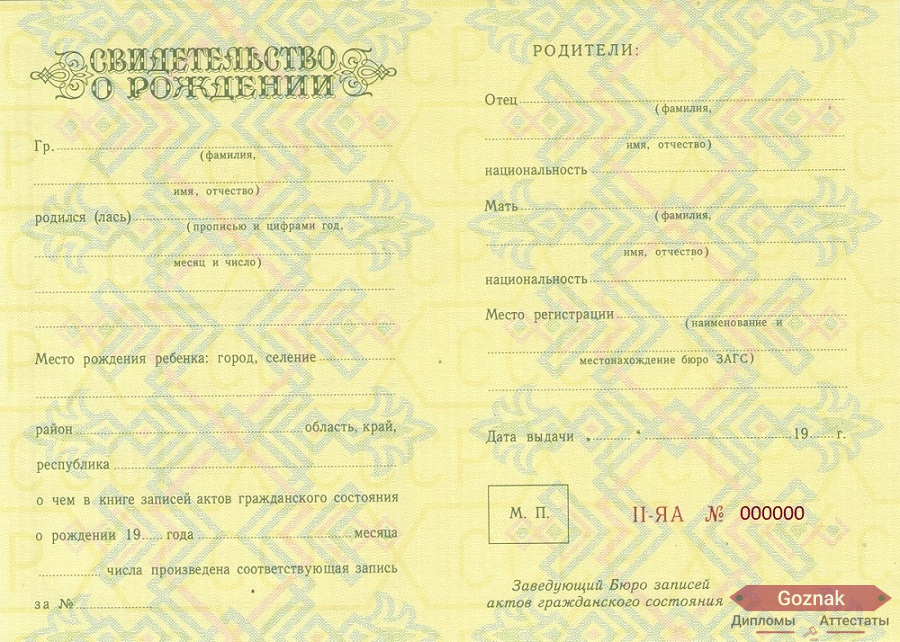 - При изготовлении свидетельств о рождении СССР 1954 - 1970 гг. используем бланки со всеми элементами защиты;