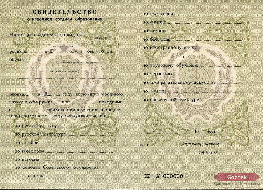 - При желании вы можете заказать аттестат за 8 класс 1972 - 1993 гг. времен СССР;
