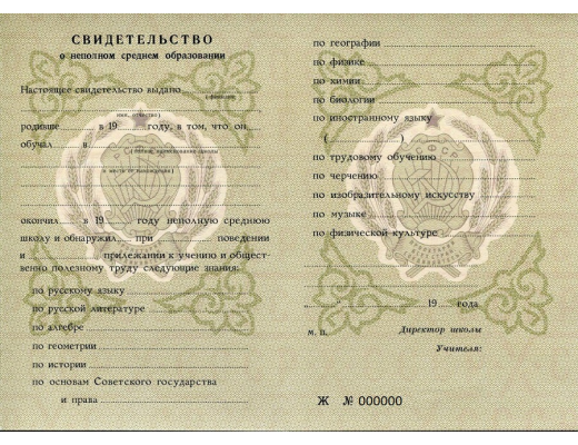 Купить аттестат за 8 класс 1972 - 1993 гг. легко!