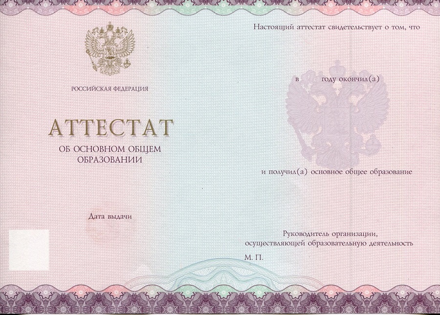 Образцы аттестатов за 8 - 9 класс: