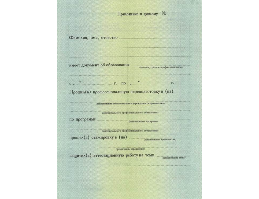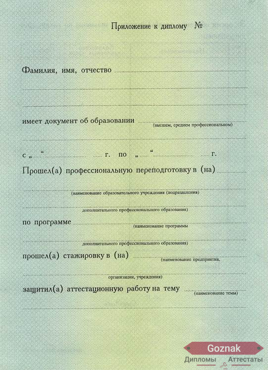 - При желании вы можете заказать диплом о профессиональной переподготовке 1996 - 2012 гг. времен СССР;