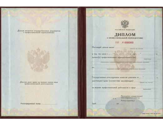 Диплом о профессиональной переподготовке 1996 - 2012 гг. заполняется профессиональными специалистами по установленным правилам и нормам министерства образования РФ. Документ на 100% соответствует всем требованиями Министерства Образования и Науки РФ.