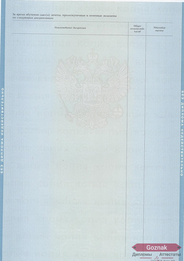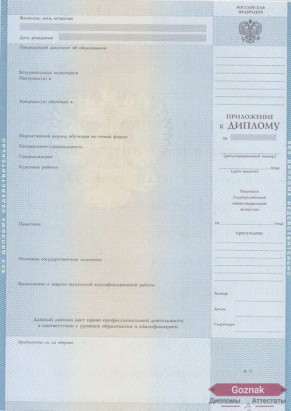 Диплом специалиста 2010 - 2011 гг. заполняется профессиональными специалистами по установленным правилам и нормам министерства образования РФ. Документ на 100% соответствует всем требованиями Министерства Образования и Науки РФ.