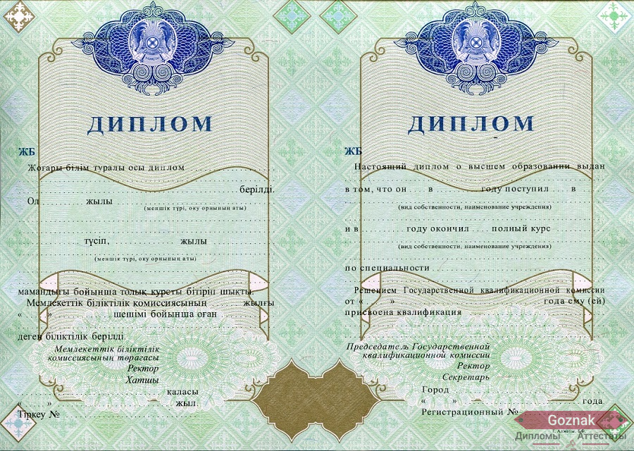 Компания «Гознак-Дипломы» успешно работает на рынке более 15 лет и предлагает Вам купить диплом ВУЗа Казахстана 1998 - 1999 гг. выгодно по хорошим ценам на настоящем бланке Гознак с оригинальными печатями и подлинными подписями. Документы имеют все степени защиты, оформлены по государственным нормам и с учетом особенностей конкретных учебных заведений. Диплом ВУЗа Казахстана 1998 - 1999 гг. на 100% соответствуют подлинникам, поэтому проблем точно не доставят, которые без опаски можно предоставлять в отдел кадров: