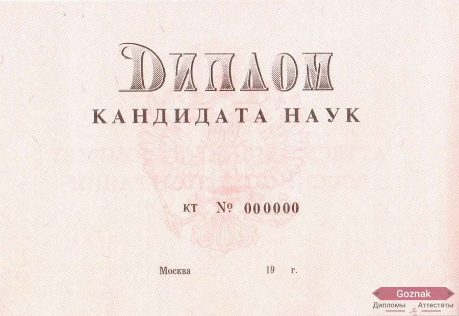 Компания «Гознак-Дипломы» успешно работает на рынке более 15 лет и предлагает Вам купить диплом кандидата наук 1993 - 1999 гг. выгодно по хорошим ценам на настоящем бланке Гознак с оригинальными печатями и подлинными подписями. Документы имеют все степени защиты, оформлены по государственным нормам и с учетом особенностей конкретных учебных заведений. Дипломы кандидата наук 1993 - 1999 гг. на 100% соответствуют подлинникам, поэтому проблем точно не доставят, которые без опаски можно предоставлять в отдел кадров: